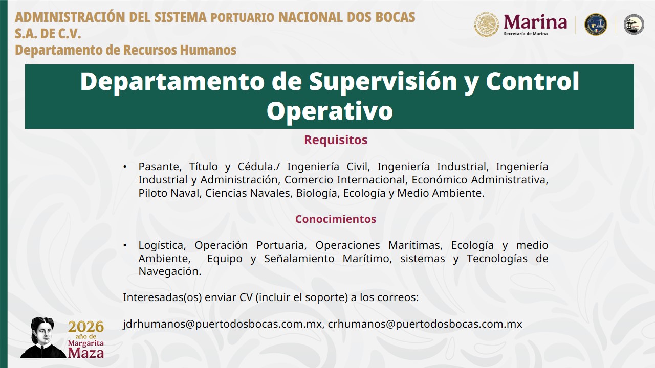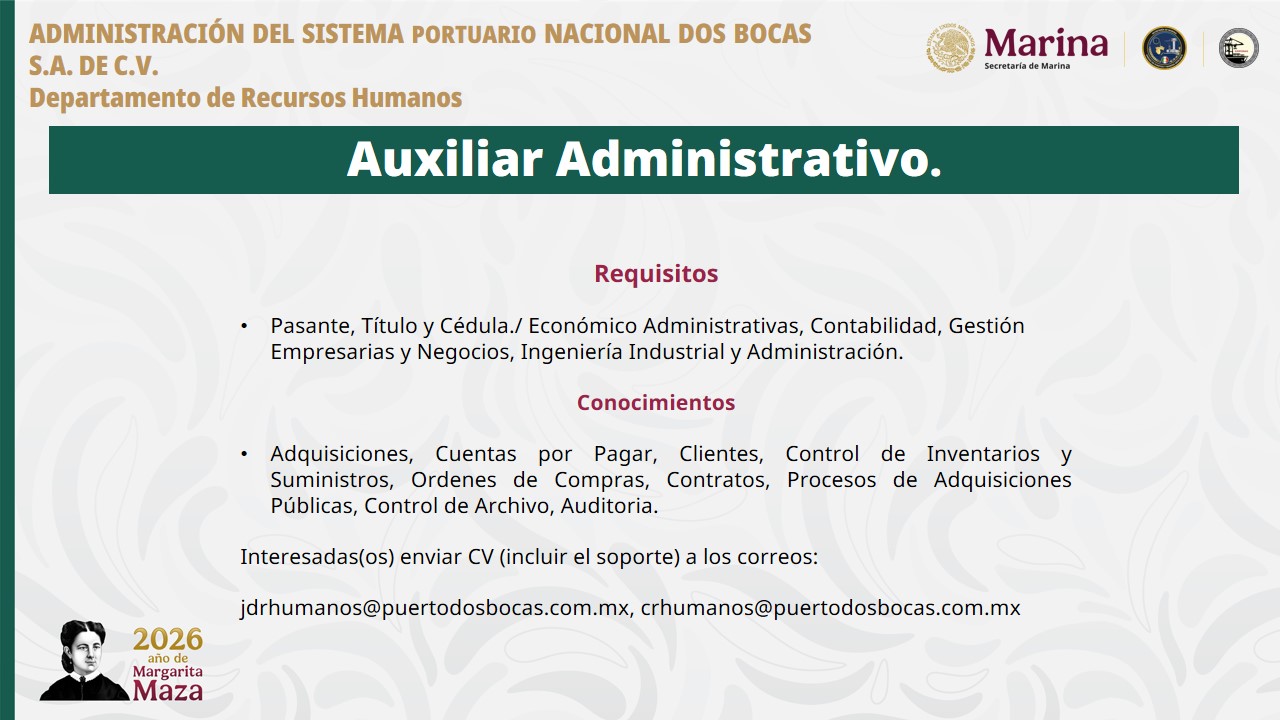 A las y los aspirantes a trabajar en la ADMINISTRACION DEL SISTEMA PORTUARIO NACIONAL DOS BOCAS, S.A DE C.V se les invita a: